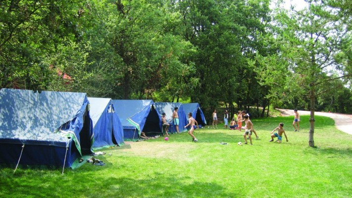 És un terreny d’acampada totalment equipat amb 8 tendes canadenques de 6 places i una tenda per monitors de 8 places, sanitaris i dutxes amb aigua calenta en un edifici d’obra, menjador i sales d’activitats.
